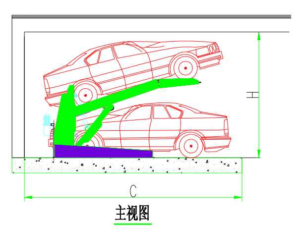 二层简易升降 运行原理 该设备充分利用空间,一个车位能停两辆车。上面层载车板可上下升降;地面层无载车板,地面层车开出后,上方的载车板下降到地面层,完成存取过程。 特点 ●对有限的停车空间,可倍双停放车辆,